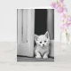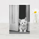 Um gatinho branco bonito em uma porta para o aniversário. O texto é editável.