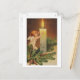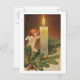 Na moda, cheio, pintura colorido de uma pequena cherub em um invólucro branco com suas asas brancas como neve, parecendo caprichosa e adorável, alcançando uma enorme vela. Limpo para decorar qualquer item de forma na moda e moderna. Adicione seu próprio texto a esta bela imagem de Natal vitoriana se você quiser ou simplesmente desfrutar da detalhada arte colorida da criatura mítica.