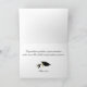 Cartão de saudação de na moda, com fotografia de cravos brancos, como fundo. Gráficos de um boné de placa de formando preto, com uma fita de tom dourado, no canto superior direito e texto de script de gráfico de tom dourado, lê Parabéns, na frente. A saudação de texto preto, no dentro, está pronta para personalizar para ler o que você quer. Bonito cartão para sua garota de graduação favorita.