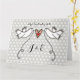 Uma ilustração de 2 belas pombas segurando fita fluindo com um coração de amor acoplado.