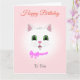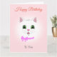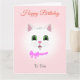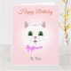 Engraçada e feliz rosto de gato branco festivo e festivo no Cartão de Aniversário da rosa claro. O texto pode ser personalizado para um parente, amigo, irmã. professor e muito mais.