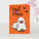 Entra no espírito assustador com este truque laranja ou o cartão de saudação do Dia das Bruxas! Apresentando um cão fantasma, mini fantasma, e morcegos, este cartão de saudação é perfeito para bruxas, magos, e qualquer um que ame vibrações mágicas. 🎃 🧙 ♀️ Esta bela carta de Halloween inspirada pelas bruxas faz a escolha perfeita para amantes, amigos ou família do Halloween que desfrutam de um toque de magia e de maldição! O texto é totalmente personalizável - você pode adicionar, editar ou remover palavras para ajustado em qualquer ocasião. ➤ Descubra Apenas as Coisas do Japão também - Da vintage à moderna, uma loja que celebra designs estéticos japoneses para os itens do dia a dia. [https://www.zazzle.com/store/justjapanthings/products]