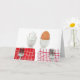 White and brown eggs in egg cups with red hearts and forks for general wedding anniversary.