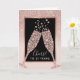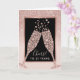 Sobre um fundo ombre de brilho rosa com rubor feminino, taças de champanhe brindam a um amigo ou familiar pelo 21º aniversário. A saudação dentro do cartão diz: "Aqui vai um brinde virtual para o seu 21º aniversário e sinceros votos para um ano repleto de novas e alegres aventuras". Todo o texto do cartão pode ser facilmente revisado com suas próprias palavras no menu suspenso de personalização. Há espaço abaixo do texto dentro do cartão para você escrever à mão uma nota e assinatura.