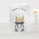 Champanhe flutua com arcos pretos sobre o fundo branco elegante para o aniversário de casamento dos casais. Os nomes são editáveis.