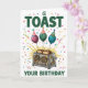Adorável design de aniversário com tema de torrada com balões e confete. Perfeito para comemorações divertidas. conteúdo generativo