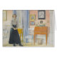 Vintage imagem de uma jovem em saia antiquada e colocada ao lado de uma mesa. Belas artes pelo pintor sueco Carl Larsson.