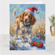 Cartão Brittany Spaniel Pointing at Santa's Glove Hat