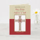 An ornate and elegant cross is highlighted over a red and kraft colored background. Perfect card to wish your brother-in-law congratulations and blessings on his conversion to the Catholic faith.