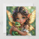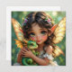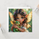 An adorable card with a little brown eyed elven fairy and a cute little baby dragon she is holding.