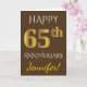 Este simples e personalizado design de cartão de aniversário de casamento apresenta a mensagem "FELIZ 65º ANIVERSÁRIO", com o "65º" tendo uma aparência semelhante ao ouro falso. A frente também apresenta um nome personalizado e um fundo marrom. O interior apresenta uma mensagem de aniversário de casamento personalizada. Pode ser dado ao marido ou à esposa em celebração do aniversário de casamento de sessenta e cinco anos do casal. [~Z0000090]