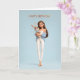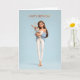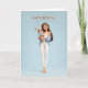 Cartão Brunette Girl in Blue Cardigan w/ White Bunny BDay