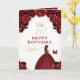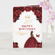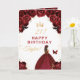 Este cartão de aniversário elegante e glamouroso pode ser personalizado com um nome ou título como filha, neta, sobrinha, amiga, etc. O design apresenta uma bela princesa com cabelo morena em um vestido vermelho burgundy. O texto combina o script manuscrito e as fontes sans serif modernas para um aspecto elegante e sofisticado. Os arranjos florais, borboletas e confete de ouro criam a mistura perfeita de rústicos e quicos. Gráficos por www.etsy.com/uk/shop/SunflowerDayLove