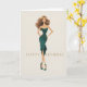 Cartão Brunette in Elegant Dark Teal Dress Fashion BDay