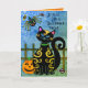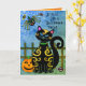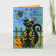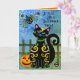 Este cartão de Dia das Bruxas divertido apresenta uma cena com uma aranha bonitinha vestida como uma bruxa sentada na teia dela. Uma gatinho preta, com pelo decorado em espirais laranja, está sentada abaixo dela, ao lado de uma abóbora esculpida cor de laranja. Dentro à esquerda do cartão mostra a bruxa-aranha sentada na teia dela com doces. O texto no cartão diz (frente) "Jessica, For a Halloween trata..." (dentro) "...Eu coloquei o feitiço mais doce em você!" Personalize o nome da amostra com o nome do destinatário.