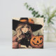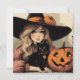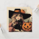 Cartão Bruxa de Halloween com Gato Negro e Abóbora