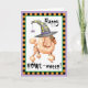 Mande saudações de Halloween com este cartão de um lindo Poodle de Brinquedos vestindo uma máscara verde e um chapéu de bruxa decorado com uma aranha de bobo. Excelente para crianças de todas as idades que amam Poodles e Halloween. Tenha uma boa HOWL-oggy!