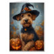 Cartão Bruxa do Airedale no Halloween