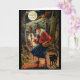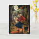 Surpreenda seus amigos com um cartão de saudação fantástico de Dia das Bruxas, apresentando uma bruxa caminhando com seu gato e coruja através de uma noite iluminada.