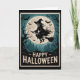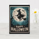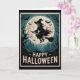 Cartão Bruxa Spooky do Halloween voando através de uma lu