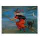 Cartão Bruxa voando com gato preto na noite de Halloween