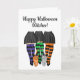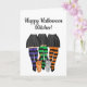 Este cartão de saudação é uma design bruxa para pessoas que amam bruxas e cores pervertidas. Esta design inclui três bruxas vestindo meias listradas coloridas caminhando com dois gatos vestindo pequenos chapéus de bruxas. Excelente para dar aos seus amigos durante o mês de outubro. Esta é uma ilustração das bruxas representando três bruxas vestindo meias de tendências longas caminhando no Halloween com seus gatos.