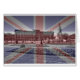 Palácio de Buckingham, residência para a Rainha Isabel II e a estátua Rainha Vitória, preto e branco e o sindicato Jack Flag