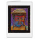 Retrato midiático misto do Buda feito por Sheryl Karas. A pintura original foi feita principalmente em acrílicas em canvas em vermelho, ouro, preto e azul.