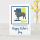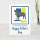 silhueta de cão Bull Terrier inglês em padrão de linhas de grade modernas em amarelo, azul e preto. ‘Para o melhor pai de cachorro’ e ‘Feliz Dia dos Pais’ do lado de fora e mensagem adorável dentro pode ser alterada para o que você quiser. Ótima maneira de celebrar o Dia dos Pais de um amante de animais de estimação.