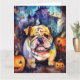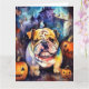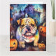 Cartão Bulldog de Halloween com Abóboras Assustadoras