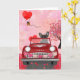 Cartão Bulldogue Francês Carro com Corações do Dia dos Na