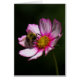 Bumblebee está em uma flor rosa bonito da margarida Cosmos com fundo verde.