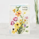 Este bonito cartão de aniversário floral apresenta uma ilustração de buquê de flor selvagem, criada por mim numa arte em estilo aquarela. A frente do cartão diz "Cartões de aniversários!" e a dentro do cartão diz "Pensando em você no seu dia especial e desejando muita felicidade sempre! Feliz aniversário!" Há muito espaço para acrescentar sua própria nota pessoal também. Este cartão bonito e sincero iluminaria o aniversário de qualquer um, especialmente daqueles que apreciam flores e designs de safra.