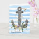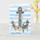 antiga âncora com corda e buquê de flor sobre fundo de cor branca e listrada a azul