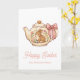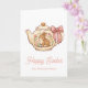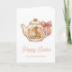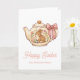 Celebre a Páscoa com este cartão de saudação com um coelho adorável aninhado em um bule decorado, ovos de Páscoa minúsculos e detalhes florais encantadores, tudo amarrado com um laço rosa doce. Perfeito para enviar votos calorosos a familiares e amigos durante o feriado de primavera. Personalize facilmente com o nome da sua família ou uma mensagem personalizada dentro para torná-lo exclusivamente seu.