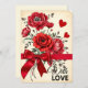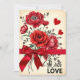 Cartão Buquê de Flor Vermelho Elegante com Corações e Fit