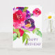 Cartão de Saudação "Feliz Aniversário" Personalizado: Flores de Aquarela Bonito Padrão/Personalização de Tipografia Moderna