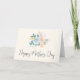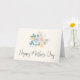 Cartão Buquê de Flores Rosa e Azul Elegante para o Dia da