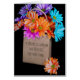 Buquê colorido de margarida em saco castanho comum em preto com citação de amizade