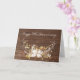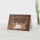 Corda-luz brilhante no buquê floral de veados em madeira marrom rústica para o aniversário de 70. O texto do cartão pode ser alterado para qualquer celebração do ano de casamento.