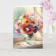 Um belo buquê de flores coloridas em um vaso de vidro limpo, em uma janela ensolarada, é o cartão de aniversário perfeito para um amigo.