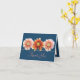 Três lindas flores cor-de-coral, rosa, e dahlia laranja, são colocadas sobre um fundo de cor azul. O texto cor-de-rosa usa uma fonte de tipografia de script atraente. As flores cobrir a frente deste cartão que pode ser usado como cartões de agradecimentos de casamento, cartão de aniversário ou qualquer outro cartão de sua escolha. Personalize-o com o seu texto e/ou imagens para torná-lo de um tipo!