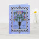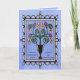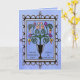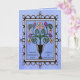 Um fundo azul-piscadinho, ricamente tonto, dispara esta interpretação original e moderna de um buquê floral multicolorido estilo vitoriano clássico num vaso rodeado por uma armação de ferro-seca. Dentro saudando "Eu te amo, mãe!" é personalizável.