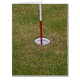 Buraco de golfe em verde com vara branca e vermelha. Fotografia
