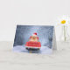 Cartão Cachorro da raça Spitz Alemão na neve sentado em c