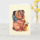 Cartão Cachorro de aniversário com saxofone