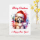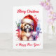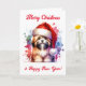 Se você ama Lhasa Apso e quer um cartão de Natal bonito, então aqui vai você! Estilo aquoso bonito ai art Lhasa Apso em Santa Hat.