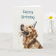 Ótima ilustração de desenho animado do Ouro Retriever cão vestindo um chapéu de aniversário. Perfeito para amantes de animais de estimação ou pais de cães.