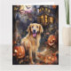 Cartão Cachorro de Ouro de Halloween com Abóboras Assusta
