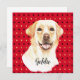 Imagem em estilo retrato de aquarela do cão Labrador Retriever sobre fundo de harlequin vermelho, preto e dourado. Personalizar com nome ou mensagem especial